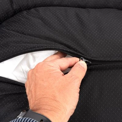 - Removable insert: filled with polyester wool, can be removed using the zip closure
