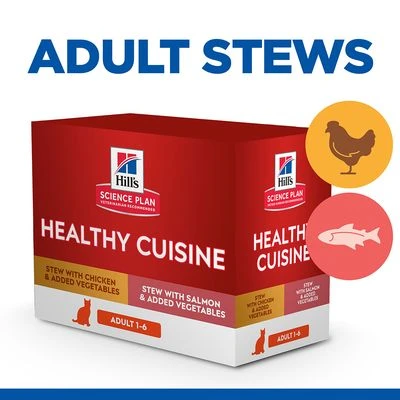 There’s juicy chicken for dinner tonight and tender salmon for tomorrow! Hill’s Science Plan Adult Healthy Cuisine with Chicken & Salmon is a mixed pack that offers your cat plenty of variety and provides everything that it needs to live a healthy life.