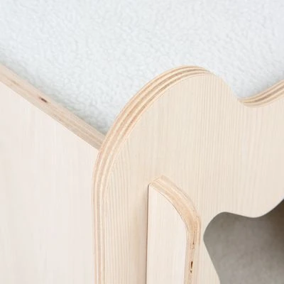 Double-storey cat bed made from wood, with 2 comfortable laying surfaces and padded reversible cushion.