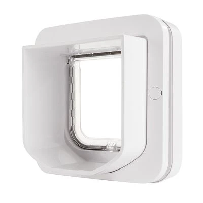 SureFlap MicroChip Cat Flap from Sure Petcare (alternatively the SureFlap Microchip Pet Door for larger cats) is a revolutionary, battery-powered cat flap which reads your cat’s existing identification microchip, only unlocking for them. With just a push of the button, the SureFlap cat flap saves your cat’s chip number. Up to 32 microchip numbers can be stored in the device memory, so it is perfect for multi-pet homes. If your cat is not microchipped, the cat flap can be activated with an RFID collar tag. The door opens and shuts automatically as your cat goes through the flap. The SureFlap cat flap from Sure Petcare also has an easy-to-use manual 4-way lock, so you can control which direction the flap opens.